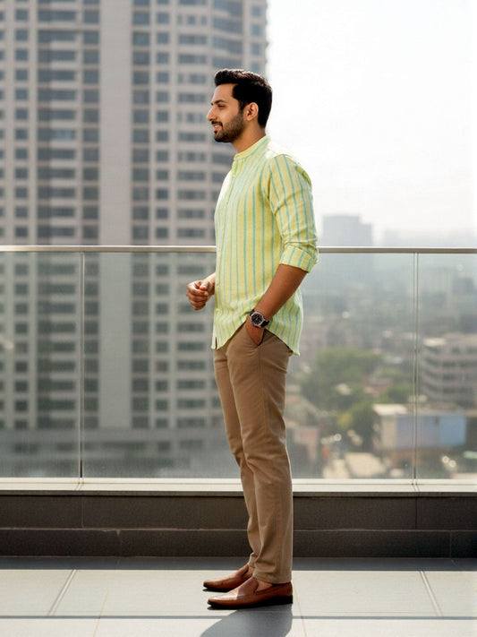 Pear Green Striped Linen Shirt