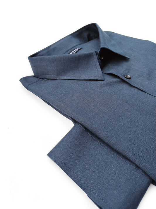 Navy Blue Linen Shirt (Classic Collar)