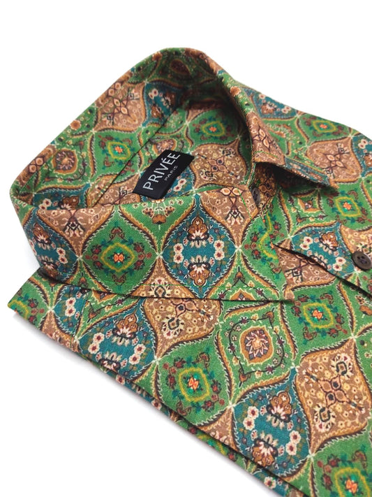 Green Designer Print Shirt (For Mehndi Ceremony)